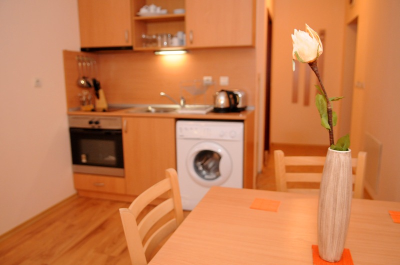 - хол с кухненски ъгъл, диван /разтегаем/, холна маса, ТВ със сателитни канали, телефон, ъгъл за хранене